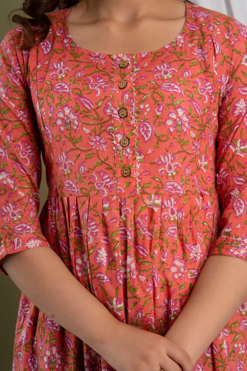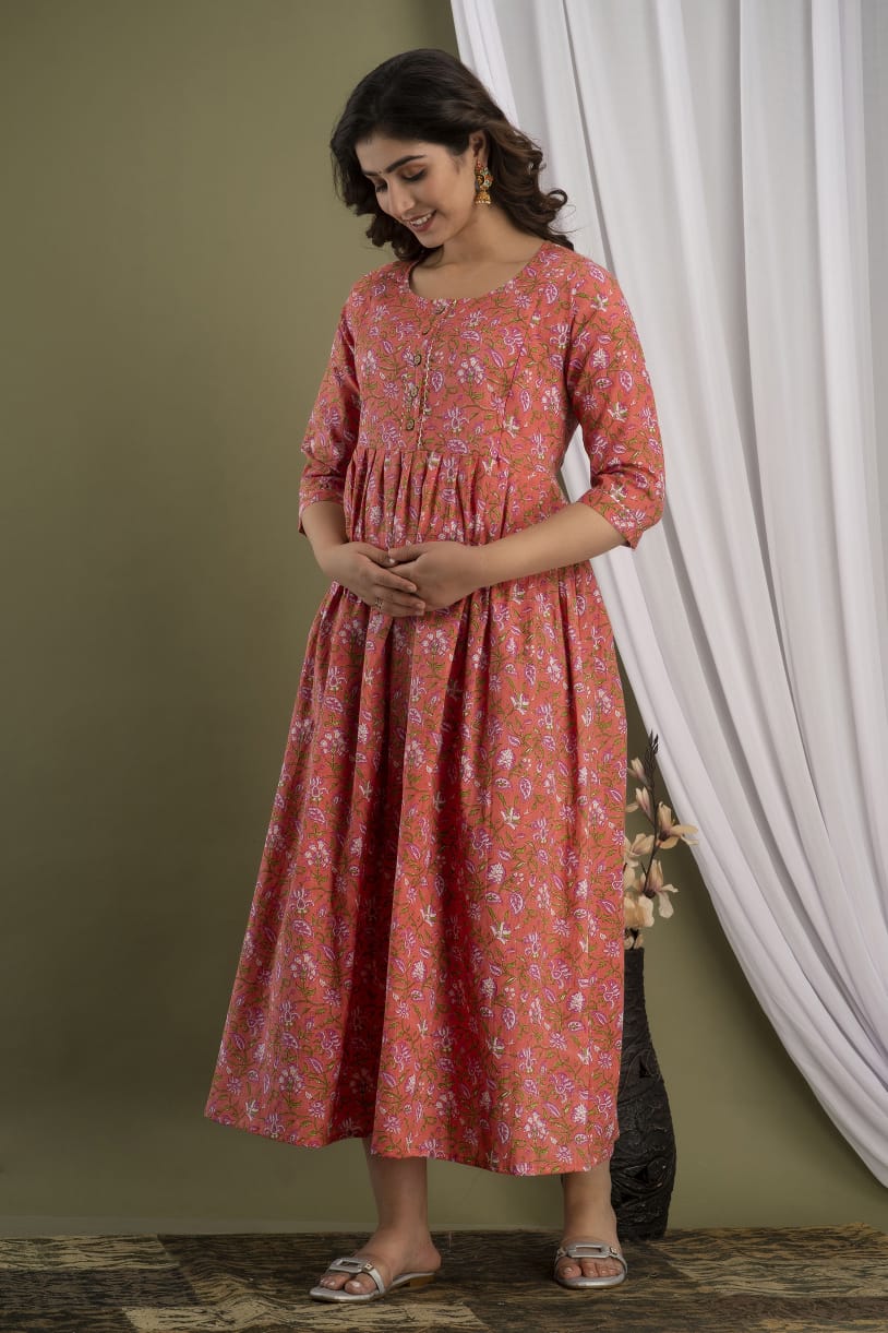 Women's Cotton Maternity and Nursing Anarkali Kurti provides comfort & convenience in pre- and post-pregnancy. Crafted from Cotton with a printed design, this piece features a discreet feeding zip. Stay comfortable through your motherhood journey with Nevisha Style Collection.