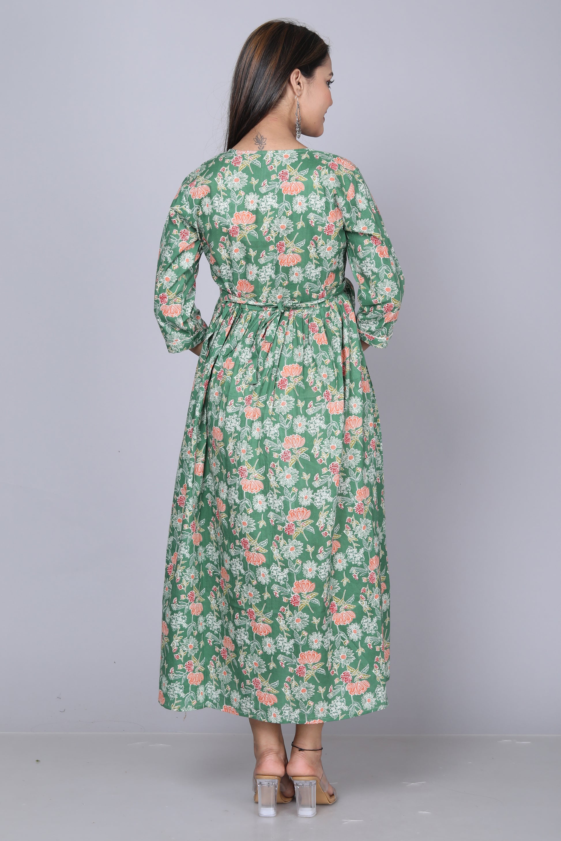 Women's Cotton Maternity and Nursing Anarkali Kurti provides comfort & convenience in pre- and post-pregnancy. Crafted from Cotton with a printed design, this piece features a discreet feeding zip. Stay comfortable through your motherhood journey with Nevisha Style Collection.