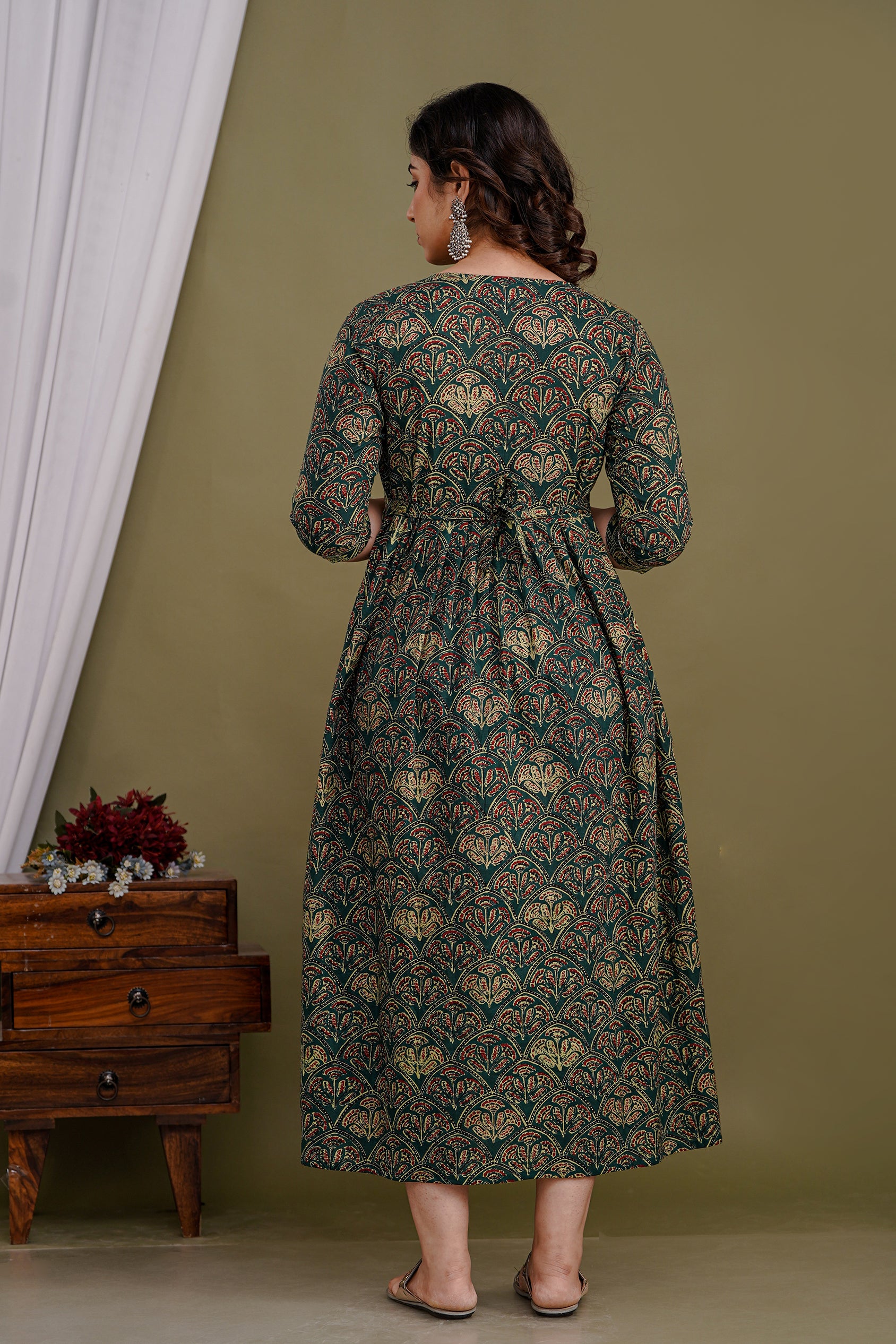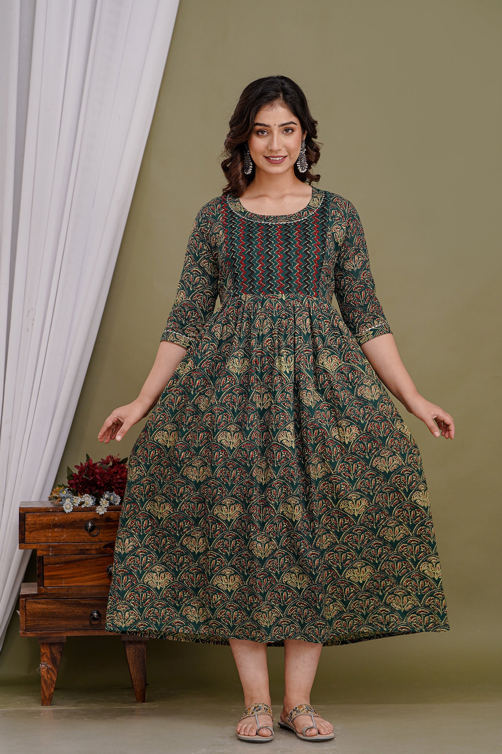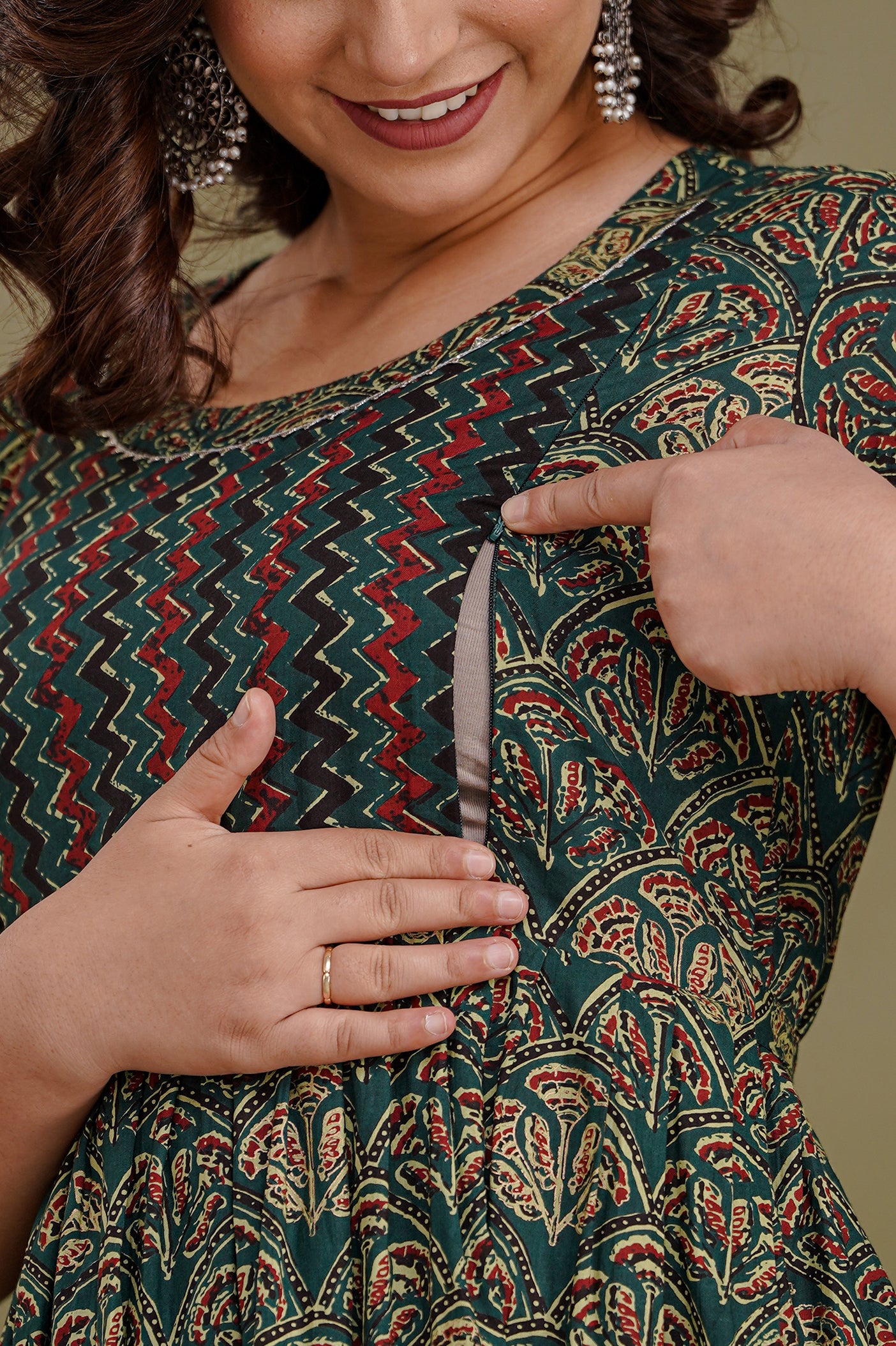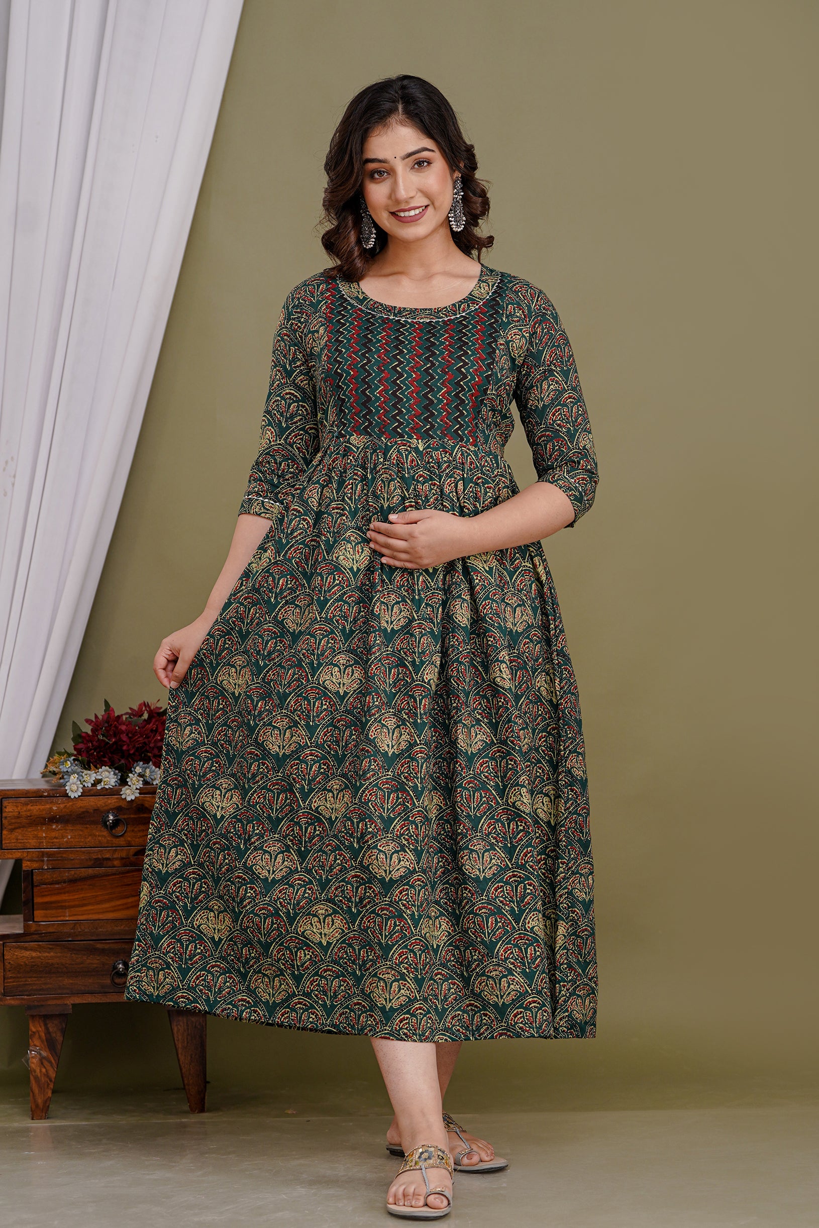 Women's Cotton Maternity and Feeding Anarkali Kurti, Useful for Pre-pregnancy and after pregnancy period, Cotton Printed maternity with feeding zip, Enjoy your maternity period with Nevisha Style Collection