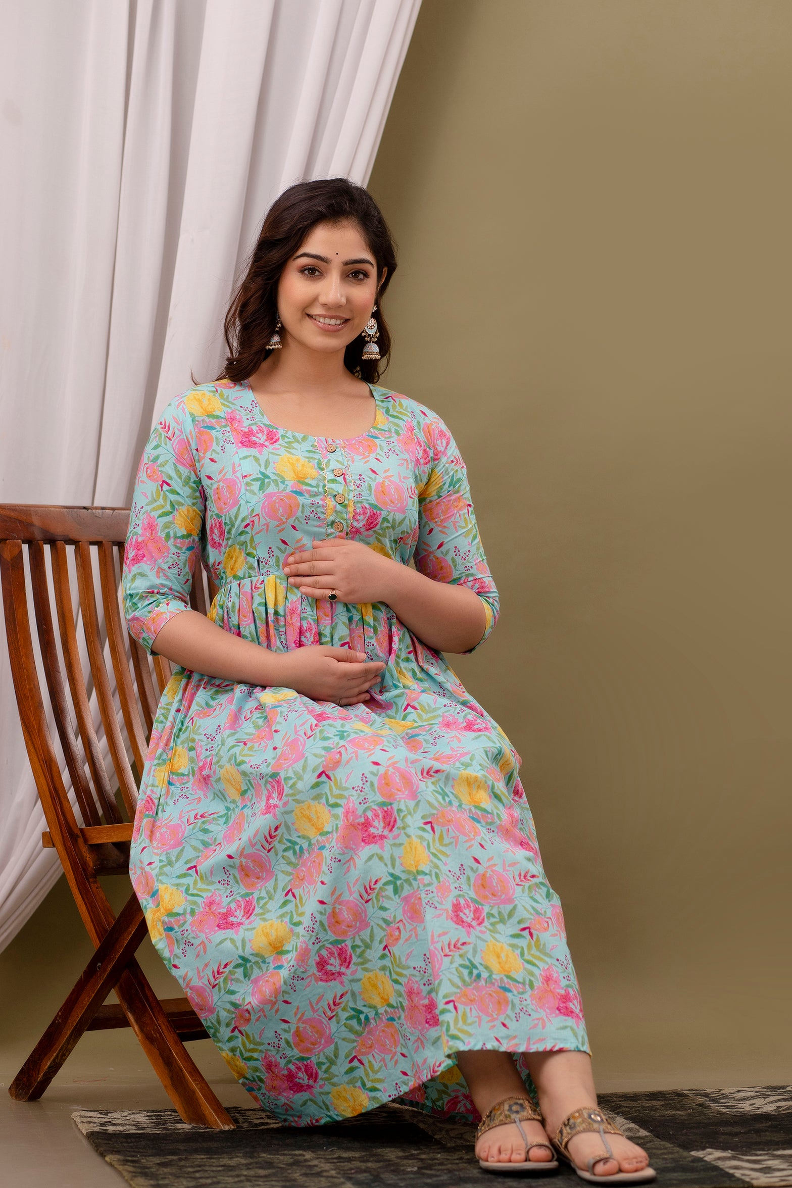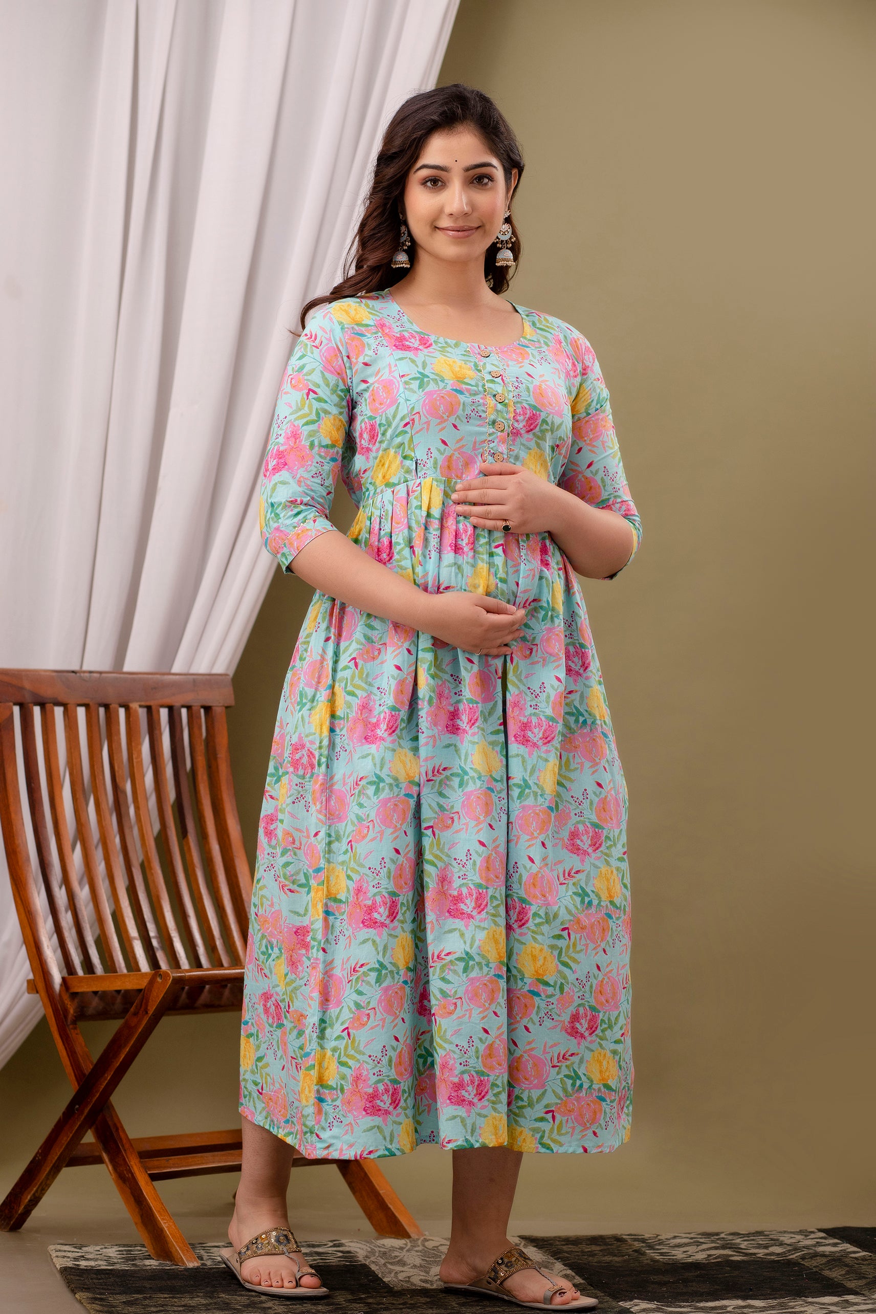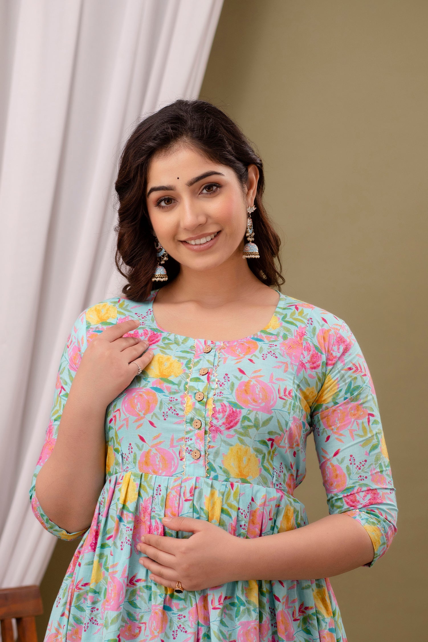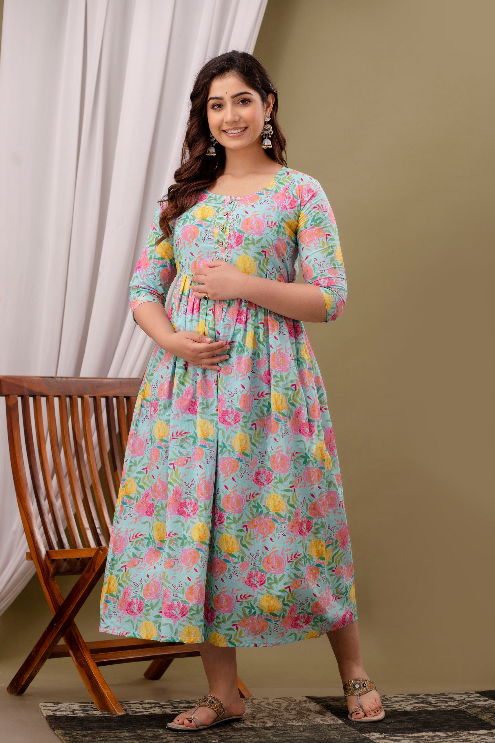 This stylish Maternity and Feeding Anarkali Kurti from Nevisha Style Collection is perfect for both pre- and post-pregnancy. Crafted from soft cotton fabric, it features a stylish printed design and a convenient feeding zip for easy access. Enjoy a comfortable and fashionable pregnancy with this elegant piece.