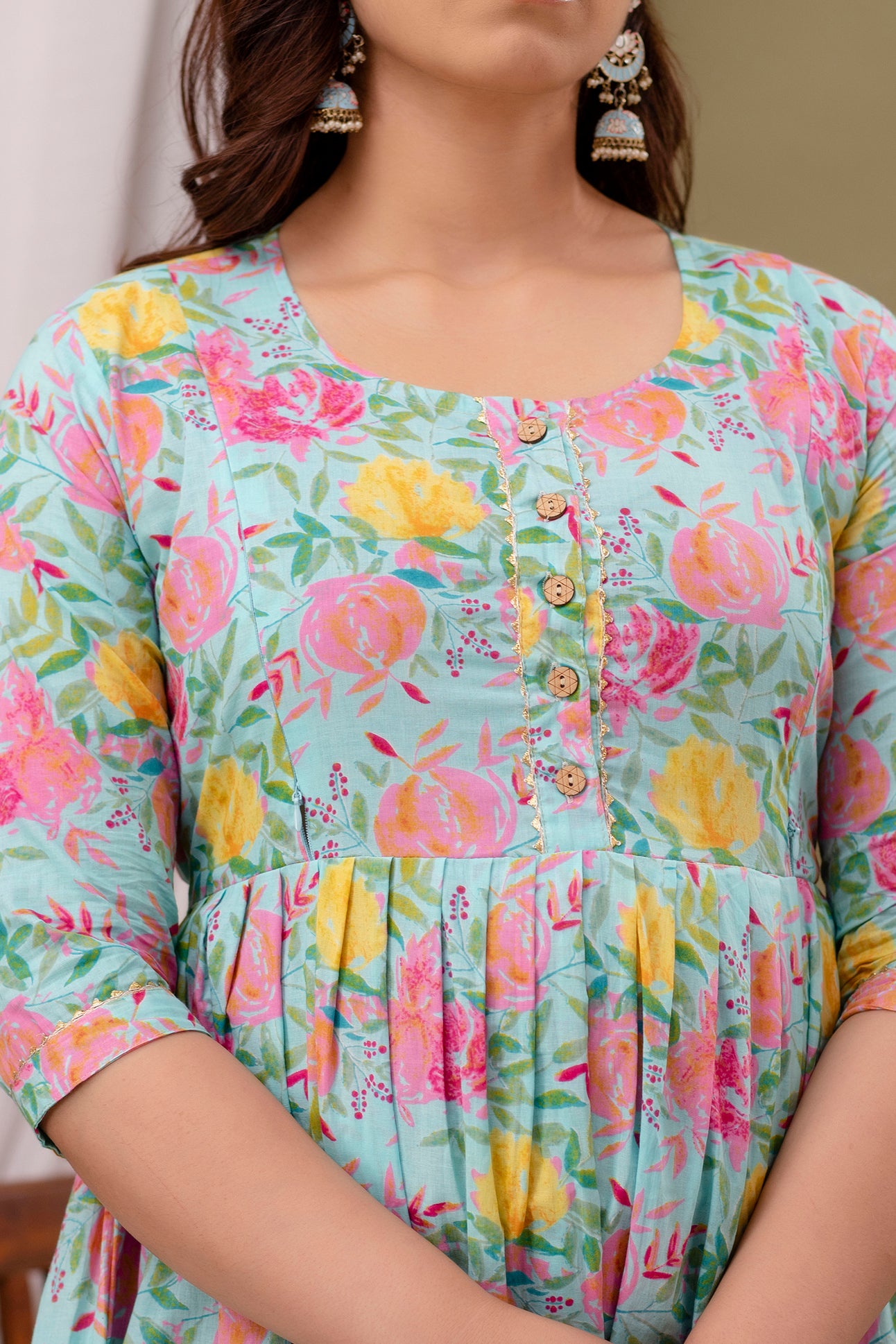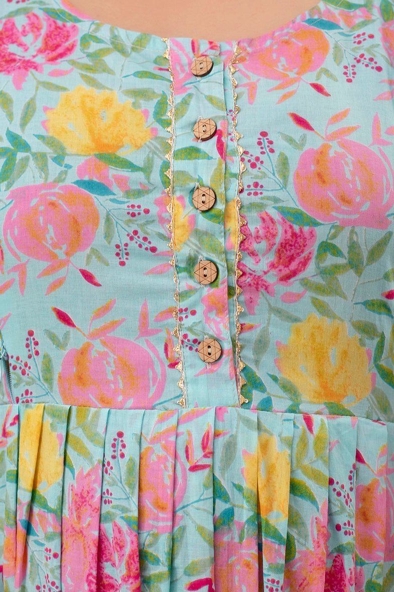 Blue multi floral Cotton maternity and feeding kurti