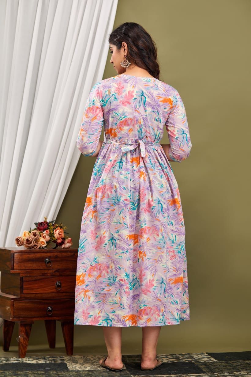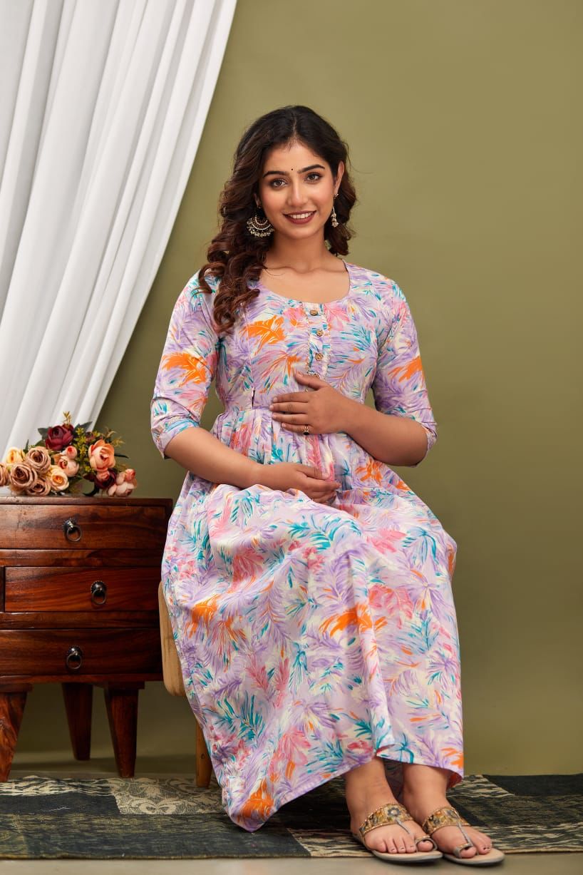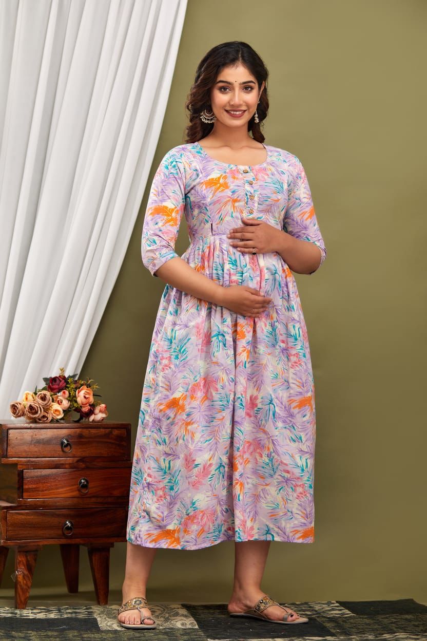 Women's Cotton Maternity and Nursing Anarkali Kurti provides comfort & convenience in pre- and post-pregnancy. Crafted from Cotton with a printed design, this piece features a discreet feeding zip. Stay comfortable through your motherhood journey with Nevisha Style Collection.