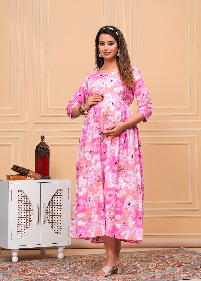 Women's Cotton Maternity and Nursing Anarkali Kurti provides comfort & convenience in pre- and post-pregnancy. Crafted from Cotton with a printed design, this piece features a discreet feeding zip. Stay comfortable through your motherhood journey with Nevisha Style Collection.
