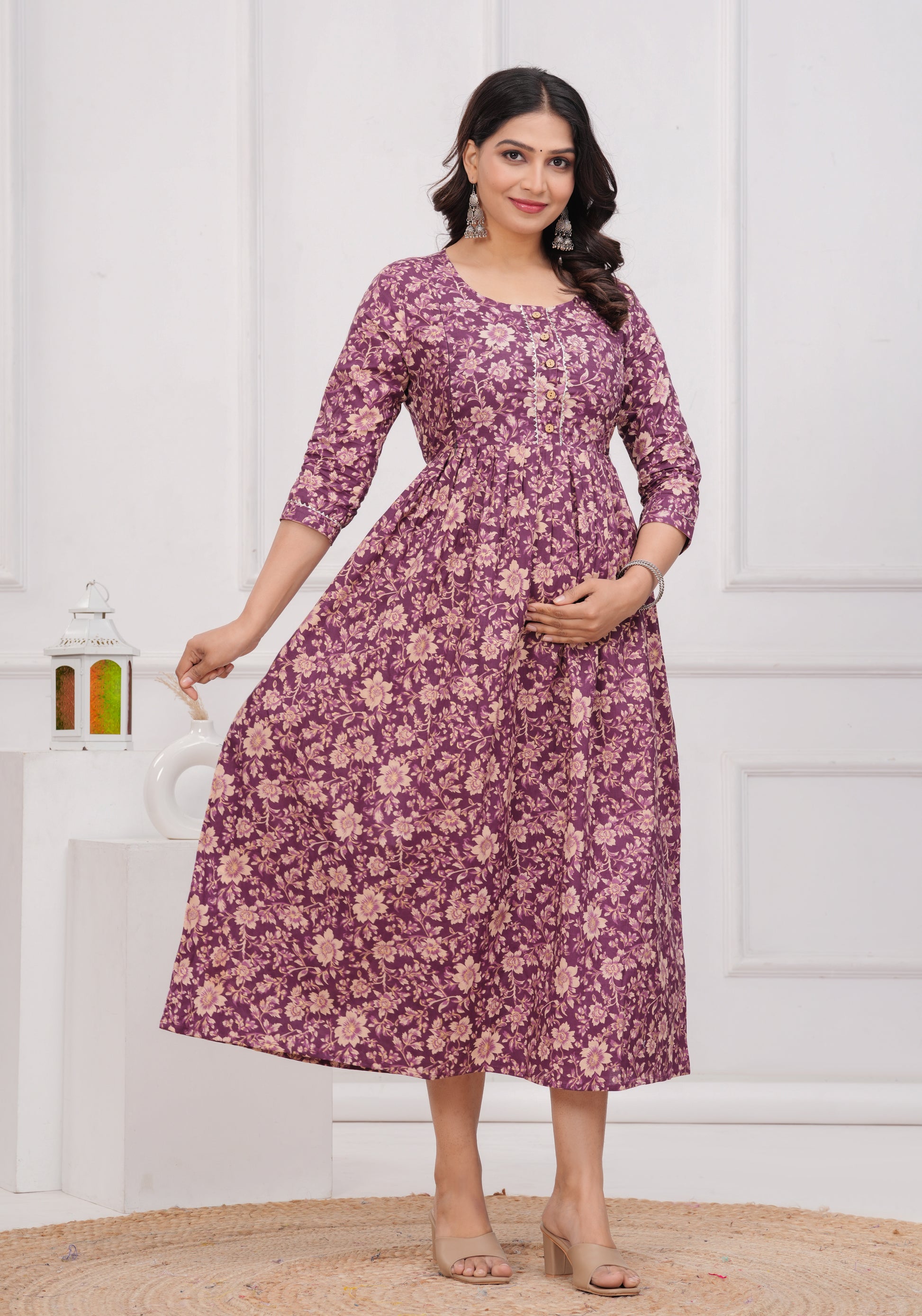 Purple flower cotton maternity and feeding kurti